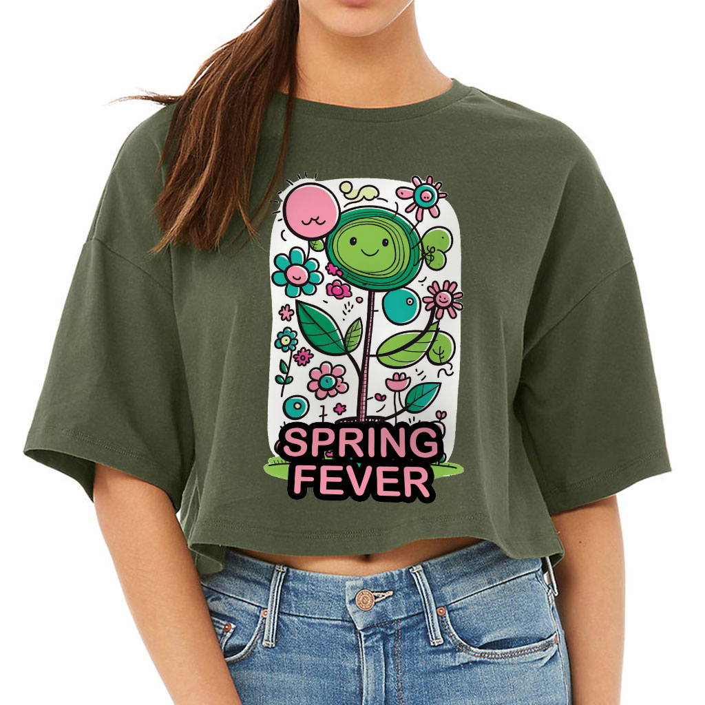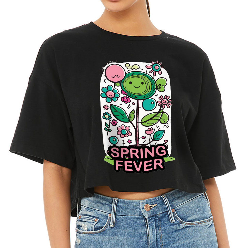 Spring Fever Women’s Crop Tee Shirt – Cartoon Cropped T-Shirt – Art Print Crop Top