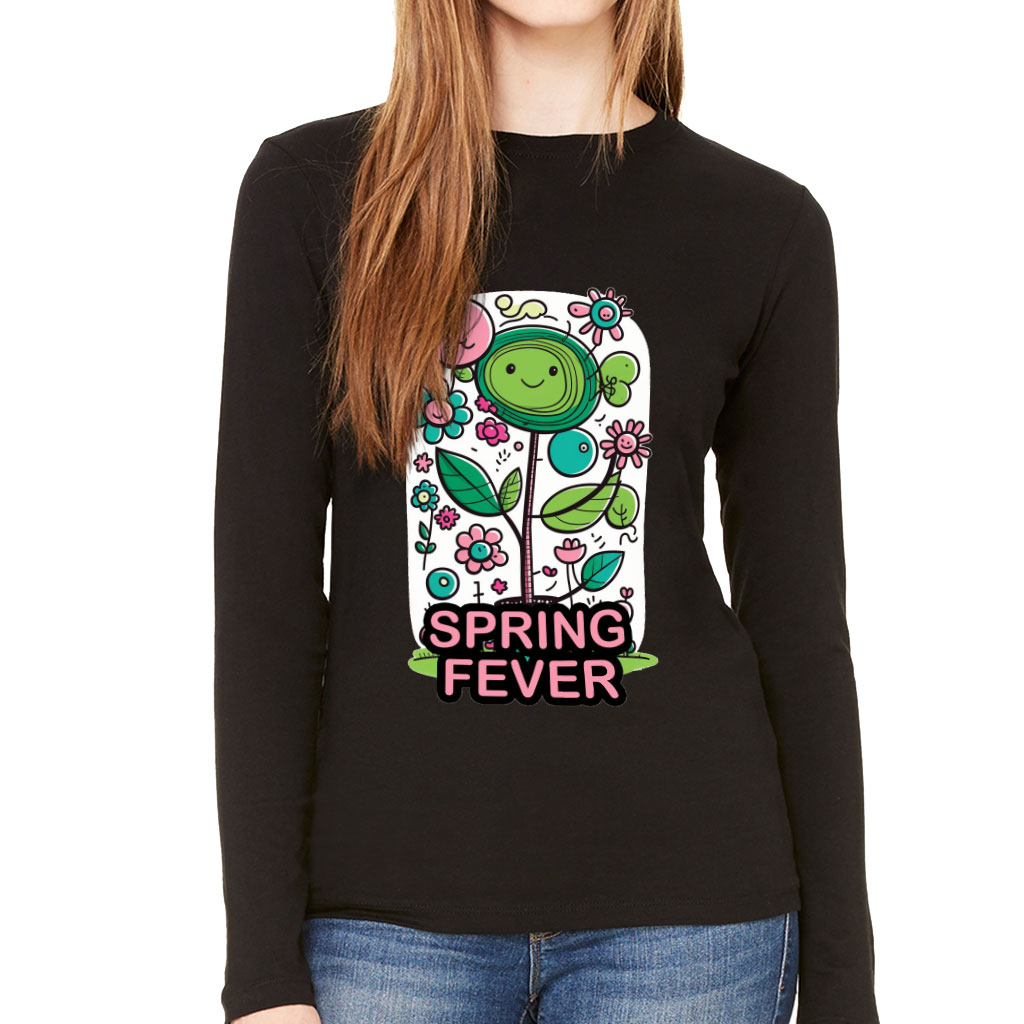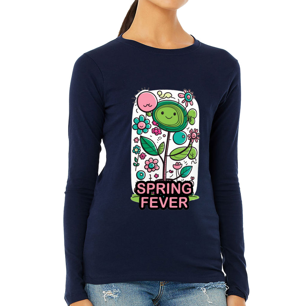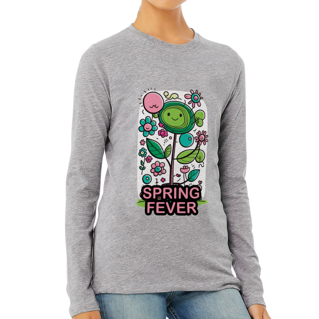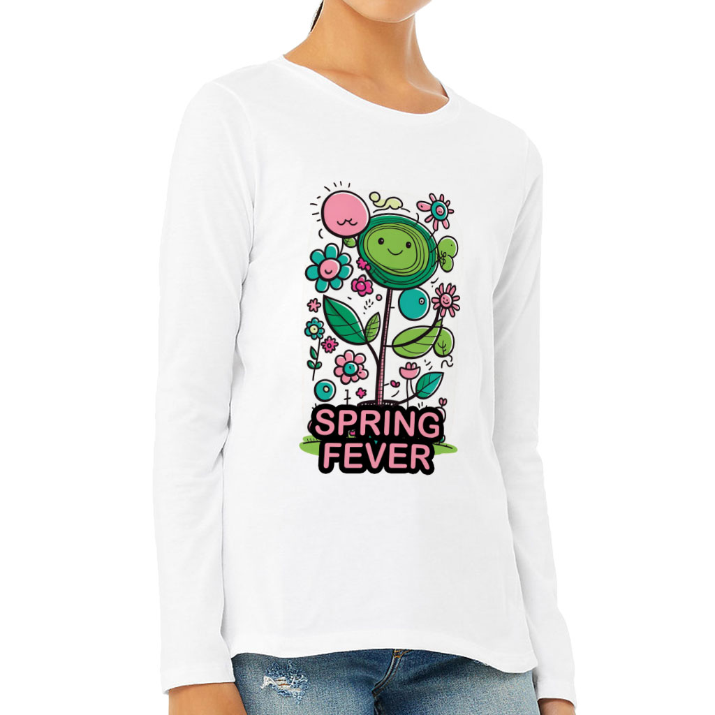 Spring Fever Women’s Long Sleeve T-Shirt – Cartoon Long Sleeve Tee – Art Print T-Shirt
