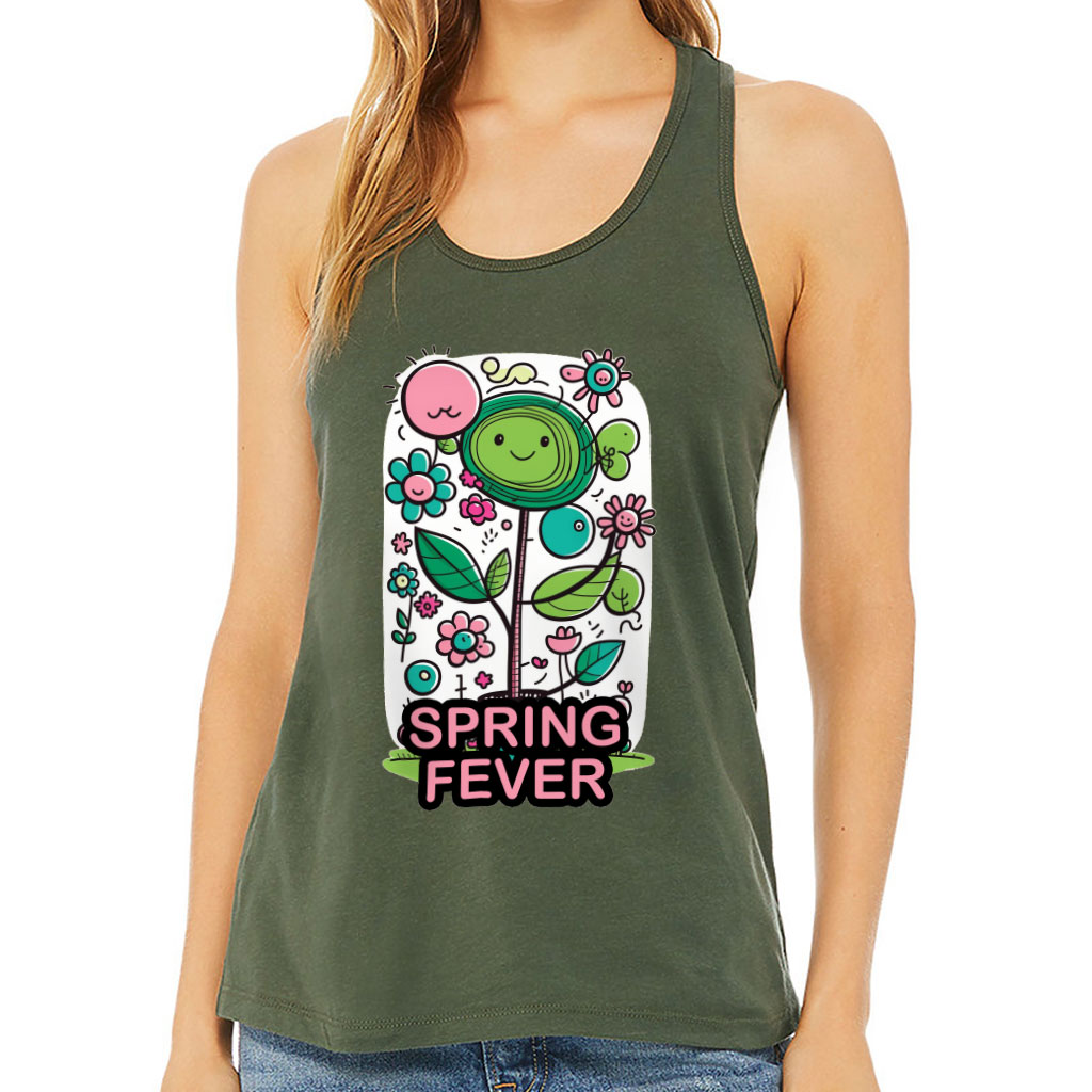 Spring Fever Women’s Racerback Tank – Cartoon Tank Top – Art Print Workout Tank