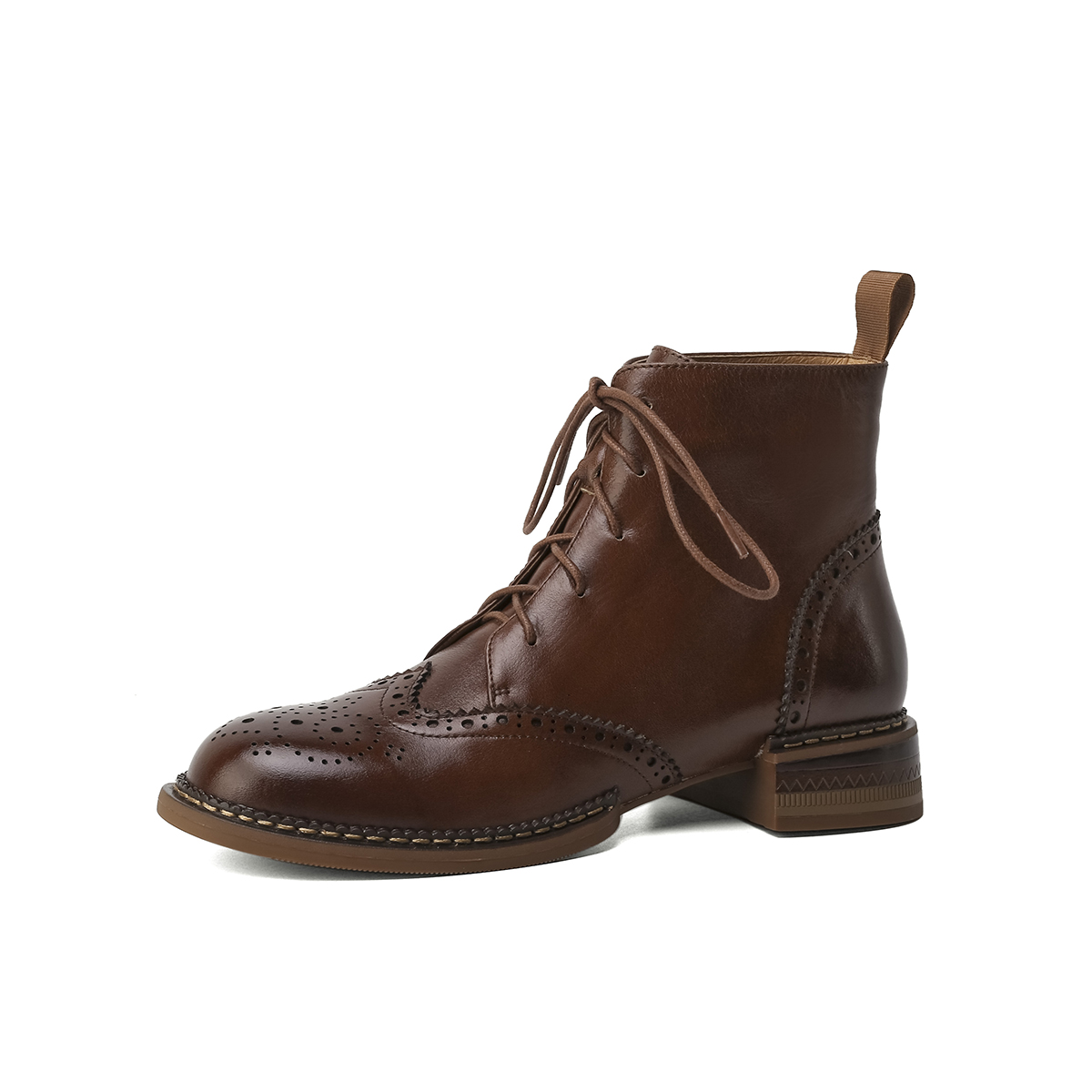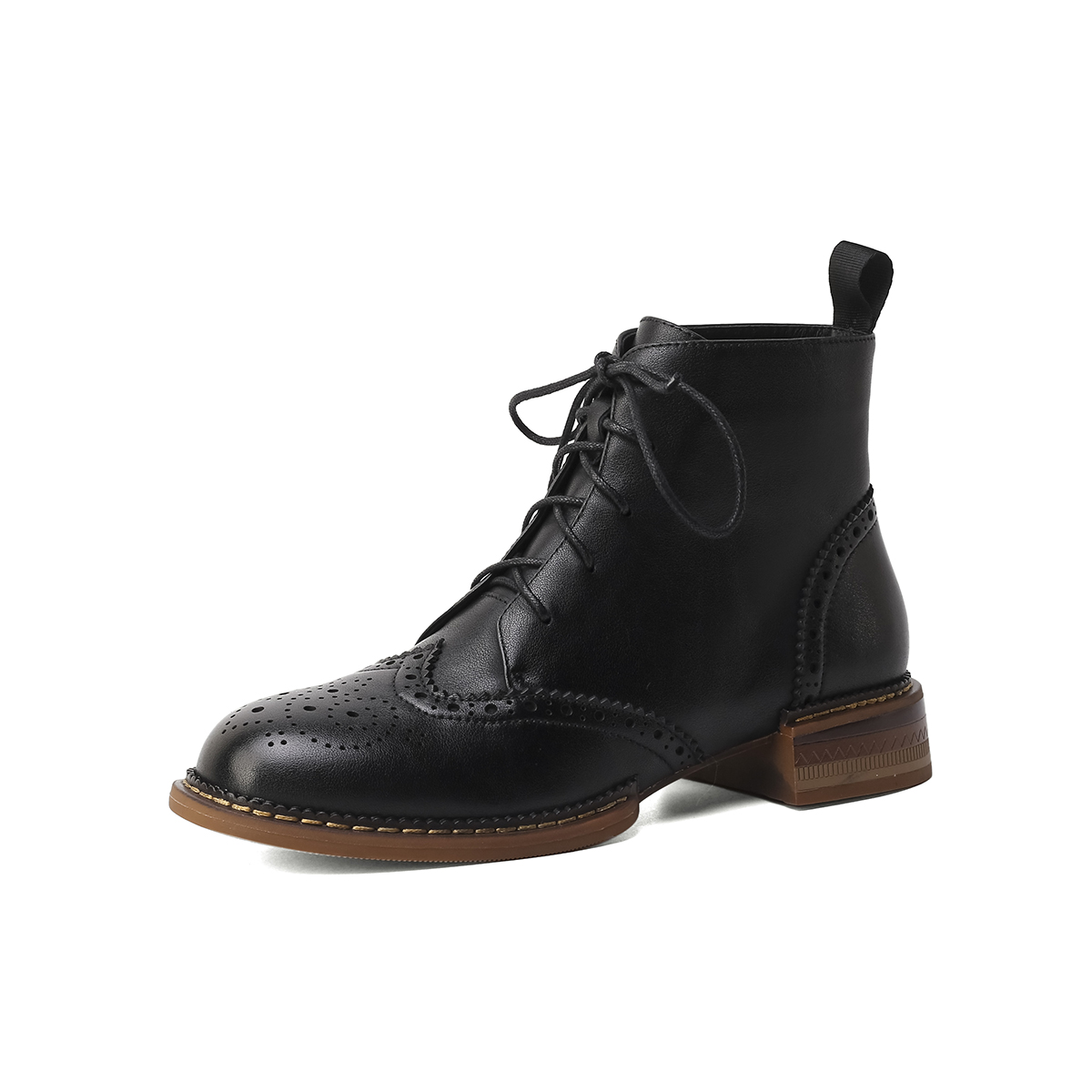 Winter Women’s Ankle Boots – Round Toe Genuine Leather Low Heel Lace-Up Shoes