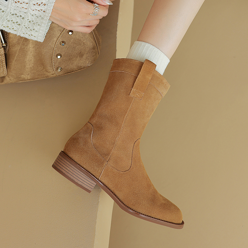Whether you’re heading out for a day at work, a weekend adventure, or a night on the town, these boots are the ideal choice. Their mid-height heel and comfortable fit make them suitable for long wear, while the cow suede material ensures a polished and stylish appearance. Pair them with jeans, dresses, or skirts to create a variety of stunning looks.