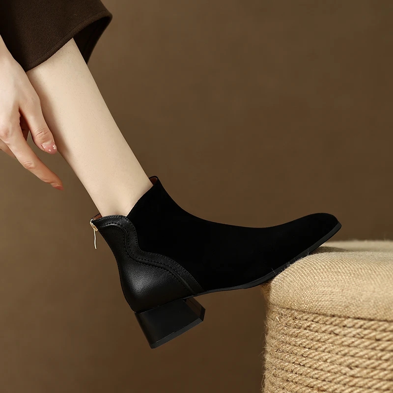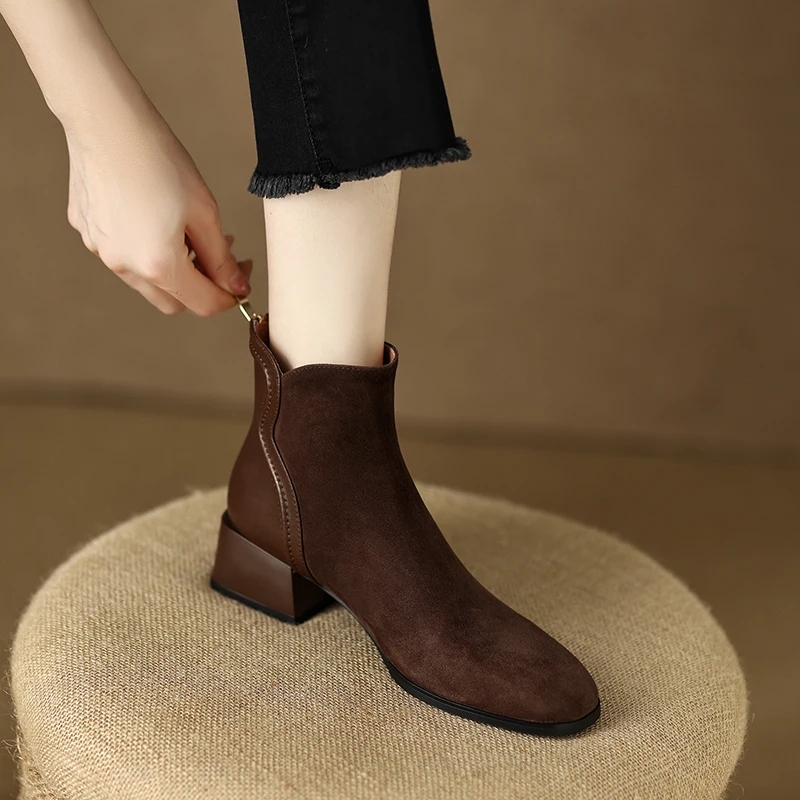 Women’s Suede Chunky Heel Boots with Zipper